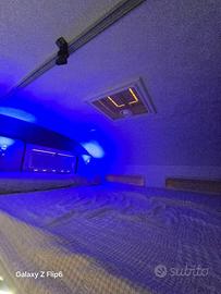 Granduca Garage Roller Team 6 posti letto e 4 in viaggio del 2011 87000km 3000 cc 160 cavalli due letti matrimoniali uno in coda e uno in mansarda completi di luci da notte e smart TV. Zona dinette e sedili guida passeggero rivesti in pelle beige in e marrone camera posteriore aggiuntiva con schermo lato guida, schermo android 13.Ampio Garage con scaffalatura e spazio per 3 bici elettriche sedie e tavoli, frigo grande con congelatore separato e bagno con box doccia distinto.Aria condizionata in cabina e in cella riscaldamento canalizzato Webasto e sistema di raffreddamento Dometic.Generatore Dometic 3 KV impianto con due pannelli e due batterie (NDS) + regolatore di tensione Victron con bluetooth e app per gestione dei pannelli e inverter 2 KV. Piedini pneumatici rinforzati con pannello per auto livellamento e livellamento manuale sistema di sospensioni ad aria.Nell'ultimo anno sono stati effettuati lavori di siggillatura lucidatura tagliando completo e sostituzione gomme.Allarme centralizzato,tendalino Fiamma 750 con doppia illuminazione sotto la veranda con piccola e grande lampada, fari aggiunti posteriori lato sinistro per agevolazione alla manovra nottura ed eventuale sosta notturna.Illuminazione interna con luci soffuse blu.Per evitare di graffiare e usurare il parquet esistente è stato applicato in tutto il camper un tappeto in effetto finto parquet.Porta bici esterno 3 posti.