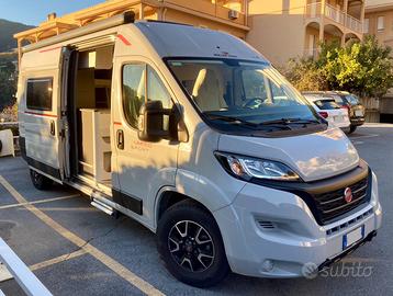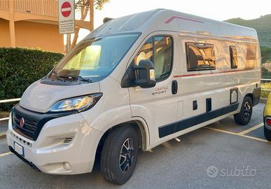 Camper Roller Team Livingstone 5 Sport Limited omologato per quattro persone, quattro posti letto, motore Fiat Ducato 140cv, vernice esterna colore grigio campovolo, cerchi in lega da 16 pollici, tendalino, pannello solare, radio + retrocamera, oscuranti plissettati cabina, zanzariera sul portellone scorrevole, portabici esterno, boiler Truma a gas, riscaldamento a gasolio Webasto. Immatricolato ottobre 2023, pari al nuovo, mai usato, 4900km. No permute.