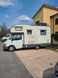 Safariways Nairobi mansardato, anno 92 (bollo ridotto) su Ford Transit 2.500 aspirato (indistruttibile), km 147000, cinghia + pompa ed iniettori fatti a 145000, 6 posti omologati, lunghezza 5,5 m, stufa Truma, 2 generatori, 1 pannello fotovoltaico, 3 batterie, bagno ristrutturato, frigo trivalente, tendalino 4x3m, tutto perfettamente funzionante.