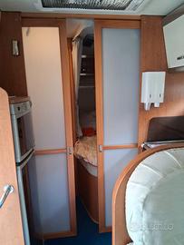 vetri e specchietti regolabili elettricamente - radio cd, staccabatteria, aria condizionata in cabina e cellula, doppio pavimento passante su telaio alkoo, grande gavone sottoletto e gavone passante con apertura sui due lati, antifurto volumetrico, ABS, airbag, scaletta esterna, retrocamera con schermo 7 pollici, tendalino e luce esterna, vano per 2 bombole da 10 kg, pannello fotovoltaico con inverter da 2500, maxi oblò Heki con oscurante e zanzariera, luci a led e neon, antenna digitale terrestre, attacchi esterni (gas, presa 220 e tv), frigorifero 150 lt trivalente a commutazione automatica con freezer separato, letto alla francese, piano cottura 4 fuochi, forno e scalda vivande con piezoelettrico, cappa aspirante, triogas, pannello analogico per controllo batterie e livello serbatoi, sedili cabina girevoli con tappezzeria coordinata, bagno con doccia separata con chiusura ad ante, ante scorrevoli per chiusura zone notte-bagno, 2 oblò 40x40 (camera e bagno) con oscurante e zanzariera, riscaldamento e produzione acqua calda con Truma Combi, armadio grande con 2 porte e 3 cassetti, baracchino e stereo Sony.