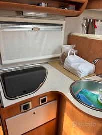 Cilindrata 2300 150 cv Modello 2015 Posti omologati 4+1 Gomme e cerchi in lega da 16" nuovi Doppio serbatoio acque chiare Aria condizionata Porta moto Sospensioni ad aria Doppio riscaldamento a gasolio e gas (Truma + webasto) 2 pannelli solari 12v 300 volt Frigo grande Doppia cassetta di scarico wc Freno motore per discesa Cruise control Telecamera posteriore Garage grande Antifurto totale e perimetrale Tenuto sempre semi coperto Ottime condizioni