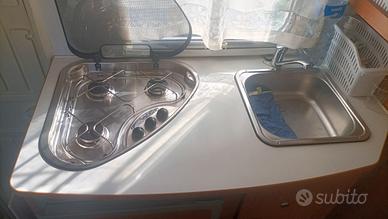 - Piano di cottura a tre fuochi.