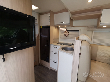 Vendo stupendo camper Bürstner Ixeo time it 726 g in ottime condizioni con solo 17000 km e un motore Citroën da 160CV. Quattro posti in viaggio e cinque a dormire. Letti gemelli trasformabile in un unico letto più letto matrimoniale basculante elettrico e un letto in dinette. Garage con porte ambi i lati per moto o bici. Il camper è provvisto di vari accessori:Climatizzatore in cabina, cruiser control, specchietti eletttrici, riscaldamento Truma a gas, posto per due bombole da 10 KG con comando automatico, pannello solare, antenna TV e TV. Luci a led, doppio serbatoio acqua potabile, cucina tre fuochi, frigo con ghiacciaia 140 Litri Dometic, tendalino dometic, grande luce esterna a led, antifurto Gemini, con telecomando e chiusura centralizzata anche sulla porta della cellula, cerchi in lega, radio doppio din Pioneer, retrocamera posteriore , zanzariere e oscuranti plissettati Rimes.