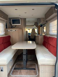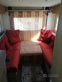 letto matrimoniale basculante, grande dinette posteriore trasformabile in divano o letto metrimoniale dinette anteriore con possibilità di trasformare in letto singolo