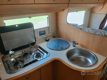 Vendo per mutate esigenze bellissimo camper semintegrale Chausson su Ford Transit 2.4 125 cv, distribuzione a catena e trazione posteriore (ruote singole, non gemellate) 75000 km fatti soprattutto in autostrada Molto spazioso e luminoso, disposizione interna da motorhome: - letto posteriore alla francese - Cucina a L con tre fuochi e doppio lavello - Frigo da 135 l e freezer separato - Dinette con comodi divani su due lati e sedili anteriori girevoli, tavolo con prolunga, velocemente trasformabile in matrimoniale - Ampi armadi su tutte le pareti - Bagno con doccia separata - Tv con antenna - Climatizzatore Dometic - Riacaldamento e boiler Truma a gas, e riscaldamento ausiliario a gasolio. In aggiunta, derivazione da riscaldamento abitacolo per scaldare il soggiorno durante il viaggio - 3 oblò, di cui uno con ventola aspirazione/estrazione - gtadino elettrico - Gavone sotto il letto - Tendalino - Doppia batteria servizi con pannello solare e inverter 3000 W - Retrocamera - 3 portabici Abbiamo aggiunto delle serrature interne di sicurezza Lungo meno di 7 m, largo 220 cm. Semimansarda aerodinamica in vetroresina Gomme recenti (Michelin 4 Stagioni) Omologato 6 posti viaggio Pronto a partire, possiamo includere presa elettrica con avvolgitore e tubo per l'acqua Fisponibili ulteriori foto su richiesta Prezzo leggermente trattabile