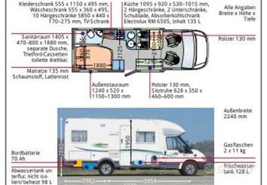 - Riacaldamento e boiler Truma a gas, e riscaldamento ausiliario a gasolio. In aggiunta, derivazione da riscaldamento abitacolo per scaldare il soggiorno durante il viaggio