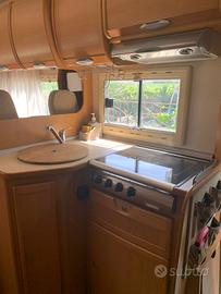 Camper 7 posti letto frigo trivalente con congelatore fornetto a gas riscaldamento trina boiler cucina quattro fuochi bagno con doccia separata rilevatore gas tendalino laterale aria condizionata in cabina vetri elettrici specchi regolabili dall'interno. Motore 2400 turbo 135 XV gemellato gomme tutte nuove tagliando e frizione fatti luglio 2025 chilometri 70000