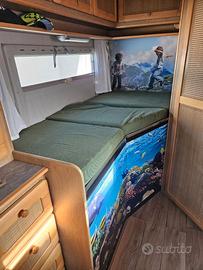 Fiat Ducato Granduca Pegaso del 1997 con soli 90000km, veicolo tenuto pari al nuovo internamente perfettio frigo trivalente nuovo bagno enorme, esternamente presenta solo con qualche lieve segno di usura e uno spigolo del paraurti rovinato a causa di una manovra errta . 5 posti letto e 6 viaggio, predisposto con bombola GPL da casa madre omologata.