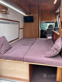 Camper furgonato immatricolato autocaravan a libretto su ford transit, motore 2.300 cc 16 valvole a benzina! euro 3, esente blocchi circolazione, anno 2002, 43.000 km originali e verificabili, esente da blocchi della circolazione e possibilità di montaggio impianto gpl, servosterzo, airbag, vetri elettrici, chiusure centralizzate, fendinebbia, cerchi in lega, pannello solare 120 watt con regolatore NDS e pannello di controllo lcd, tagliandato e revisionato, il camper aveva un allestimento caba’s molto spartano che è stato rimosso e riallestito totalmente 6 mesi fa, tutto nuovo! Gas free, frigo a compressore a scomparsa, riscaldamento planar a gasolio (russo, non cinese!) piano cottura ad alcol westfalia, boiler acqua calda nautico a 12 volt, wc thetford C400 elettrico, doccia completa, tutti i mobili in vero legno nautico, divanetto trasformabile in grande matrimoniale, tutte le luci a led, sedile passeggero girevole, tavolo a scomparsa, lunghezza 5.30 altezza 2.90 interna 1.90 si usa come un auto, non ha climatizzatore ma si può montare facilmente, penso sia unico in Italia.