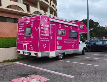 Camper completamente modificato e adattato a ufficio mobile. Un ambiente unico e funzionale, ideale per chi lavora in movimento o desidera portare la propria attività direttamente dai clienti.