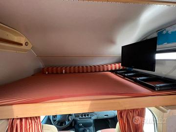 Camper Ford Rimor mansardato, gemellato, 7 posti (omologati anche per viaggio ma, presenti solo 4 cinture), bagno con doccia a parte, frigorifero grande trivalente con congelatore a parte, forno, divano, stufa, 2 letti matrimoniali, doppio attacco per bombola gas italiana/spagnola (abbiamo sia la bombola italiana che quella spagnola ma, ne funziona solo 1 alla volta), piedini di stazionamento, canalina per cappa + cappa.