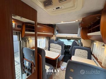 La doppia dinette permette una grande flessibilità per pasti e relax, mentre i letti a castello rendono la zona notte ottimizzata per bambini o ospiti.