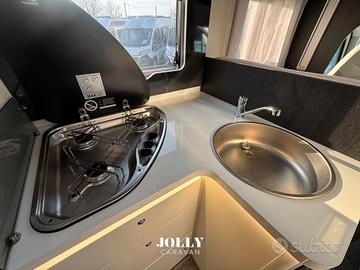 È già completo di accessori utili come pannello solare, tendalino, luce esterna e videocamera posteriore. Il frigorifero trivalente AES e il riscaldamento Truma Combi 4 garantiscono autonomia e comfort anche fuori stagione, mentre il riscaldamento del serbatoio grigie aggiunge un plus importante per l'uso invernale.
