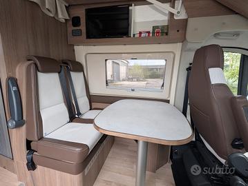 Vendo bellissimo Dreamer family van select (Rapido) , allestito su meccanica Fiat Ducato 2200 cc 140 cv , con clima , cruise control ,retrocamera , traction plus , autoradio Pioneer con display da 8 pollici . Van molto versatile grazie al suo layout con ,due letti a castello in coda , entrambi removibili all'occorrenza, ampio letto matrimoniale basculante sulla parte anteriore del mezzo , dinette spaziosa , luminosa e trasformabile in un ulteriore letto. Bagno con geniale e pratico sistema duo space . frigo a compressore di grandi dimensioni con cella congelatore . riscaldamento truma combi con doppia bombola e sistema di sicurezza per uso durante il viaggio, doppio pavimento con molti scomparti , contenitore acque grigie riscaldato. Dotato di pannello solare e portabici Thule posteriore. Lunghezza complessiva 599 , omologato 5 posti viaggianti e 5 posti letto.