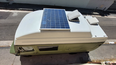 Componenti principali: Pannello fotovoltaico 200W, Regolatore di carica batteria fotovol, Riscaldatore ARIA a gasolio 8 kw, Controller Afterburner, Riscaldatore ACQUA a gasolio, Tanica acqua 150L, Frigorifero 12v