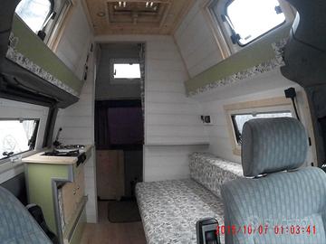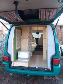 Camper su VW T4, 2400 turbo diesel, 185000 km, gomme nuove, distribuzione, pompa acqua, cinghie servizi e frizione fatte da poco ( ho le fatture), interni nuovi (sostituiti un anno e mezzo fa), riscaldamento (a gasolio) e wc in coda, pannelli fotovoltaici per 150W, 2 batterie servizi da 80 ah l'una, gancio traino, pronto per viaggiare
