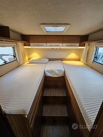 I letti gemelli in coda rendono ampia e luminosa la zona notte.