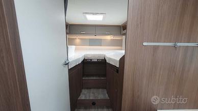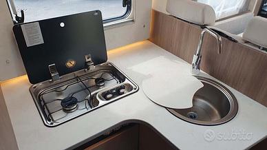 La dinette è spaziosa e, grazie ai sedili girevoli, è perfetta per ospitare amici e familiari. La cucina a gas è dotata di 2 fuochi, un lavandino e un ampio frigorifero trivalente da 167 litri, perfetto per affrontare anche i viaggi più lunghi senza preoccupazioni.