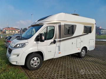 Carado T135, camper semintegrale compatto, ideale per la coppia, noto per la sua qualità tedesca (gruppo Hymer) e la lunghezza contenuta di 5,98 metri. Meccanica Fiat Ducato 2.3 M-Jet (130 CV), offre un letto alla francese posteriore, bagno con doccia integrata e 4 posti omologati. Dotato di tendalino, pannello solare, batteria servizi, smart TV, autoradio digitale, telecamera posteriore, moquette invernale su misura, impianto d'allarme, materasso comfort su misura, gradino elettrico e parabola. Mezzo del 2018, Euro 6, con 36.600 km. Pneumatici 4 stagioni nuovi appena cambiati (disponibile fattura). Sempre rimessato al coperto. Prezzo leggermente trattabile.