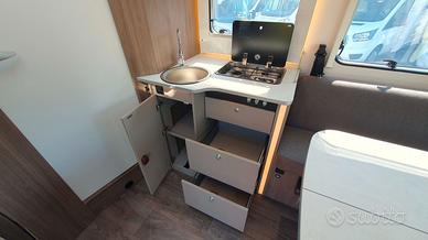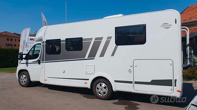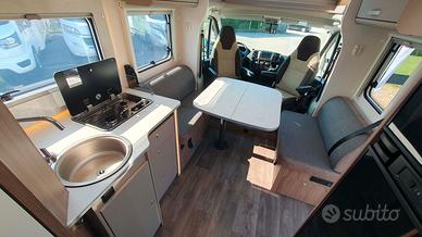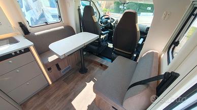 Il Carado T459 Pro è un semintegrale su base Fiat Ducato 140 CV con cambio manuale, ideale per chi cerca un veicolo versatile e confortevole per le proprie avventure. Lungo 7,39 metri, offre 4 posti omologati e 4 posti letto, simile al T447 per disposizione e lunghezza. La principale differenza è nel letto nautico posteriore, che offre una maggiore comodità e accesso rispetto ai letti gemelli. Il riscaldamento e l'acqua calda sono gestiti dal sistema Truma Combi a gas, garantendo un ambiente accogliente in ogni stagione e durante qualsiasi viaggio.