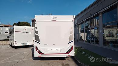 Carado V132 Modello e Motorizzazione: CITROEN 2200 140CV Posti omologati: 4 Posti letto: 2+1 Dimensioni: 594 X 214 H. 271 Descrizione: Compatto, stretto e di lunghezza inferiore a 6 metri. Il V132 può essere facilmente manovrato nei passaggi più stretti. Questa combinazione di comfort e funzionalità rende il V132 Carado il compagno ideale per le vostre avventure in viaggio. Caratteristiche Principali: ABS| EBD | ESP| incl. ASR e Hillholder Airbag conducente e passeggero Ampie superfici Armadi e cassapanche ventilati Attacco esterno per CEE per 230 V con salvavita Batteria cellula AGM Caricabatterie USB Climatizzatore cabina guida manuale Cucina ergonomica con ampia superficie di lavoro Coprimaterassi rimovibili e lavabili Frigorifero da 78 Lt. con freezer 11 Lt. Funzione Start e Stop Isofix per due posti Riscaldamento a Gas Combi 4 Garage con superficie antiscivolo Specchietti elettrici e riscaldati Traction+ Volante multifunzione Optional: Cambio automatico € 3.315,00 PACCHETTO PRO+ 132V € 4.845,00 Pedana doccia in legno € 90,00 Precablaggio pannelli solari € 175,00 Predisposizione retrocamera € 175,00 Serbatoio Diesel 90 Lt. € 50,00 Tappezzeria bianca € 225,00 TRASPORTO - IMMATRICOLAZIONE - MESSA SU STRADA € 2.300,00 Prezzo: € 67.065,00 PREZZO PROMO €59.900.00