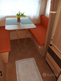 Roulotte Roller, molto ben tenuta , così composta: 1 dinette in punta trasformabile in dinette + seconda dinette in coda trasformabile in Comodo letto matrimoniale. Possibilità di recavate un secondo letto singolo a castello.