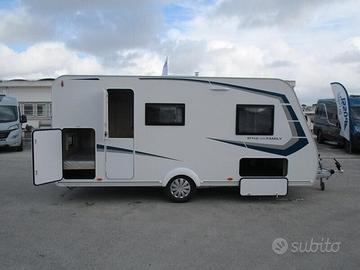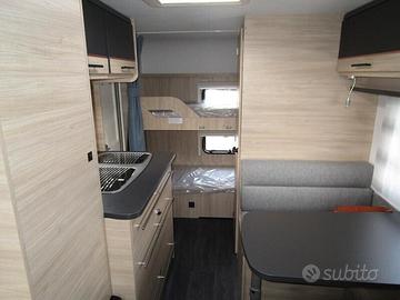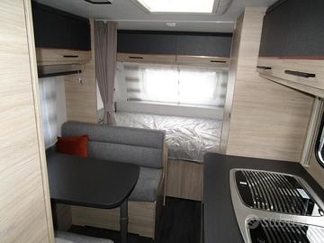 Questa caravan moderna ha una massa a pieno carico di 1.200 kg, utilizza un telaio AL-KO con ruote da 14" ed ha 6 posti letto. La configurazione interna prevede un letto matrimoniale sempre pronto nella parte anteriore, una dinette classica trasformabile in ulteriore matrimoniale ed il letto a castello posteriore che può diventare un garage, grazie al volume variabile. La cucina dispone di un capiente frigorifero a compressore da ben 150 lt, installato a scomparsa come un cassettone.