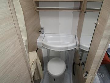 Il bagno con WC a cassetta, piatto doccia, tenda e lavandino ripiegabile, è spazioso e ben sfruttabile. All'interno della roulotte l'illuminazione è interamente a LED ed è già presente la stufa a gas Truma 3004. Inoltre grazie al Pack Style presente, trovate anche: timone AKS 3004 ed ammortizzatori AL-KO, supporto ruota di scorta nel baule anteriore, pareti esterne in vetroresina liscia, oblò Heki 70x50 cm, sportello esterno per gavone, boiler elettrico Truma Therme da 5 lt, serbatoio acque chiare da 50 lt e serbatoio acque grigie amovibile da 30 lt. Infine tra gli accessori aggiuntivi presenti su questa roulotte, ci sono anche la zanzariera porta d'ingresso, la finestra a compasso anteriore, la predisposizione della batteria servizi e l'aria canalizzata per il riscaldamento.