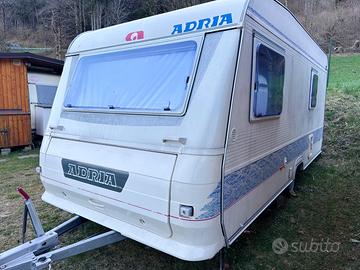 Vendo per cambio progetto roulotte Adria Unica 461 UB del 1999, 4 posti letto (di cui uno basculante in coda), bagno con doccia e wc, cucina, dinette trasformabile in ampio matrimoniale, tv, riscaldamento Truma, massa 1040 kg trainabile facilmente. Camperizzata con batteria di supporto nel gavone. Nessuna infiltrazione. 6,31 metri totali, 4,61 di caravan. All’interno tutta la tapezzeria è stata lavata professionalmente e viene consegnata pulita e igienizzata. Revisione valida fino a 05/2026. Ubicata in campeggio, visibile su appuntamento. Prezzo trattabile. Si offre e si chiede massima serietà.