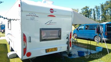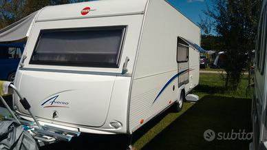 Caravan usata così configurata: letto matrimoniale fisso con materasso e doghe, dinette centrale trasformabile in letto, letti a castello posteriore trasversali, bagno: lavello vario bad con doccianello e wc con cassetta estraibile, cucina in linea con frigorifero. Posti letto: 6 Anno immatricolazione: 2011 Peso complessivo Kg: 1.250 Lunghezza con timone mt: 7,55 Larghezza mt: 2,25 Accessori: - oscurante e zanzariera a tutte le finestre - wc estraibile - fornello 3 fuochi - riscaldamento con termoventilazione - stabilizzatore antisbandamento - tendalino - veranda invernale - veranda completa (acquistata 2024) - sportello di carico sotto al letto matimoniale Sempre rimessata al coperto. Utilizzata per turismo itinerante. #caravan #roulotte #rulotte