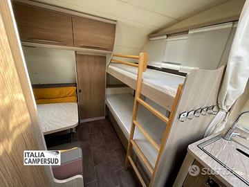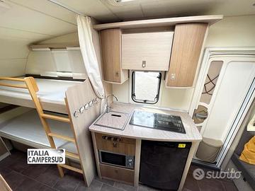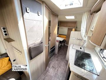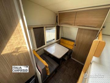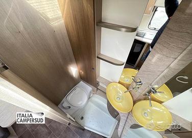 Accessori: Letto Basculante Matrimoniale Manuale, Piano Cottura, Bagno, Zanzariera Porta D'Ingresso, Forno Microonde, Oblo' Panoramico, Frigo Trivalente Dometic Da 90 Lt, Stufa Truma, Gavone a Volume Variabile