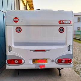 Vendo Caravan Burstner Ventana 490tk anno 2003, massa 1300 kg. E' composta da letto matrimoniale anteriore con presa tv, dinette centrale trasformabile in un letto ad una piazza e mezza, cucina con fornelli a gas, lavandino e frigorifero trivalente, due ampi letti a castello in coda, bagno con doccia integrata. E' dotata di climatizzatore dometic e stufa a gas truma oltre che armadio e ampi spazi di stoccaggio. E' stato eseguito un controllo delle infiltrazioni (non per problemi ma per sicurezza) e sono state rifatte le sigillature. E' stato verificato il repulsore e la meccanica. Unico proprietario e rimessaggio sempre al coperto e su cavalletti. Sono stati sostituiti i pneumatici e fatta la revisione. Veranda maxi inclusa. Per info e contatti (anche whattsup): 3405635673