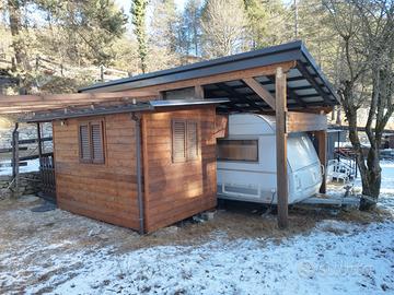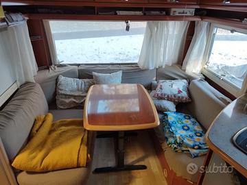 Caravan stanziale all'interno del camping Hermitage a Craveggia, in val Vigezzo. Splendida posizione, alle porte della mitica Val Grande. Con preingresso e veranda. 6 posti letto, 2 letti singoli e una dinette trasformabile in letto matrimoniale in roulotte. Una dinette trasformabile in un altro letto matrimoniale nel preingresso. In roulotte riscaldamento Truma a gas canalizzato più riscaldamento a pavimento. Nel preingresso riscaldamento a gas.
