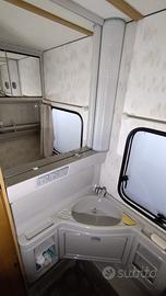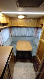Causa inutilizzo dovuto all’avanzare della nostra età, vendo caravan FENDT JOKER E, tipo 450 A, 4 posti, sempre conservata all’interno di capannone industriale, al riparo da sole e pioggia, tranne i giorni di utilizzo. Con vasca recupero acque grigie 80lt montata sotto il pianale (scarichi dei lavandini e piatto doccia bagno) con agevole tubo scarico, gabinetto Thetford, stufa, frigo trivalente rimesso a nuovo pochi anni fa cambiando il gruppo refrigerante ed aggiunta di doppia ventola a funzionamento automatico (disinseribile a contatto) per massimizzare la resa refrigerante. Avevo richiesto alla Fendt schemi impianto elettrico (fornibili a chi acquisterà) per migliorarlo. Tutte le lampadine ora sono a led ed, ove possibile, le ho sostituite con strip led ad alta resa luminosa. Aggiunta barra led quale lampada di lettura dietro tendina in zona notte, altra barra led in salottino. Il 12V derivante dalla batteria dell’auto alimenta solo il frigorifero e le luci stradali. É installato un magnetotermico bipolare di sicurezza ed un trasformatore 100W 220/12V per l’alimentazione diretta del sistema 12V e tutto funziona in automatico: quando si è fuori campeggio l’alimentazione 12V viene da una power bank (non compresa, ma fornibile), poi, alimentando la caravan col 220V, automaticamente il sistema stacca la power bank ed utilizza la rete. Quella che utilizzo garantisce luci e tutti i servizi per quasi tre giorni, comprese lunghe serate in salotto. Tutto questo per evitare di usare la batteria dell’auto a motore fermo ed avere la possibilità di fermarsi ovunque possibile e consentito, anche se non in campeggio. Materasso della zona notte fatto realizzare su misura da artigiano materassaio. Gavone anteriore con due bombole gas da 5lt caduna e ruota di scorta. Gancio di traino sostituito con l’ultimo modello AL-KO più performante e sicuro (vedere foto). Gomme in ottime condizioni. Compresi nel prezzo, il tendalino e la veranda costruiti su misura per questa caravan.