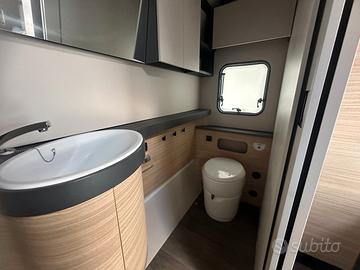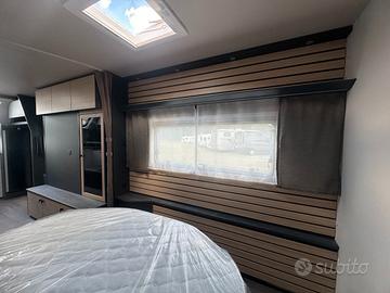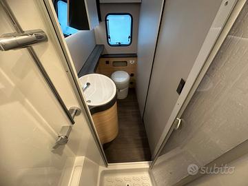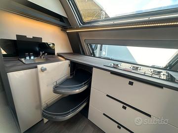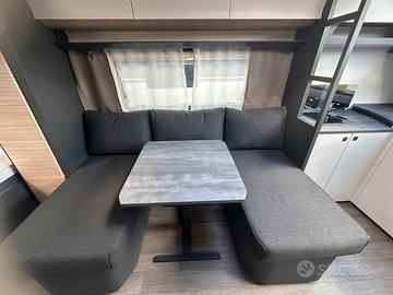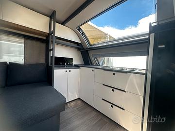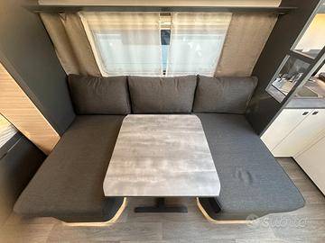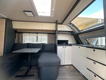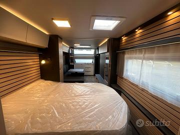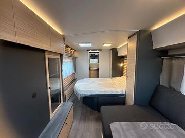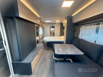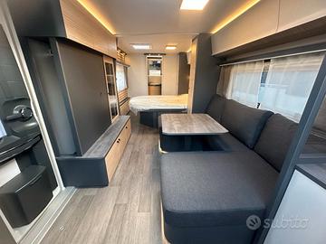 Caravan Hobby 660 WQC MAXIA mt. 8,331 x 2,50 h. 2,64 peso kg. 1900 a pieno carico posti omologati 4 posti, letto 4, doppio asse, ammortizzatori, cerchi in lega,16", sistema frenante ad inerzia knott Ans con regolazione automatica dei freni, letto matrimoniale con materasso di alta qualitàe contenitore con accesso anche dall'esterno, doppio armadio, camera da bagno con box doccia, frigoifero Dometic a compressore da 137 l., cucina con doppia finestra panoramica, illuminazione ambiente, stufa truma Combi 6000 con Boiler e termoventilazione