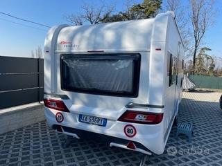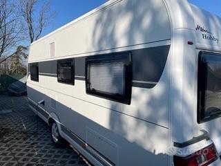 Caravan Hobby De Luxe 515 UHK immatricolata 2021, 7 posti letto reali, usata pochissimo (solo 6 viaggi in Italia), condizioni pari al nuovo. Pianta famigliare con letto matrimoniale fisso, letti a castello e dinette trasformabile per un totale di 7 posti letto omologati, ideale per famiglia numerosa.