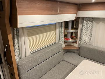 Dotazioni: tendalino Thule, portabici Thule per 2 e-bike, 2 bombole Beyfin GPL da 14 lt. (di cui una piena), doppio riscaldamento (elettrico e gas), frigorifero utilizzabile anche in viaggio con sistema di sicurezza che blocca il gas in caso di incidente, armadio, sistema anti-sbandamento HTC, Mover per facilitare le manovre, numerosi vani stivaggio e finiture di qualità tipiche della gamma De Luxe, piccolo forno a microonde, boiler per acqua calda integrato.