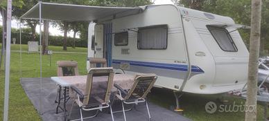 Vendo roulotte Hobby Easy De Luxe 495 UK, anno 2004, in ottime condizioni generali! Vendo per passaggio a Camper. Perfetta per famiglie: layout super funzionale con due oblò luminosissimi per tanta luce naturale. Dinette principale a ferro di cavallo che si trasforma in letto matrimoniale ampio, seconda dinette spaziosissima che diventa letto a una piazza e mezza. Due letti a castello longitudinali. Bagno con WC a cassetta estraibile. Cucina con frigo trivalente, piano cottura a 3 fuochi. Gavone per due bombole a gas, ampio spazio di stivaggio sotto i letti. Stufa Truma, boiler, prese 220V, finestre con oscuranti e zanzariere. Portabici a due posti. Usata poco, sempre coperta. Revisione valida fino a marzo 2027, tutto funzionante, ritiro immediato e pronta a partire. Contattami per info extra e visita.