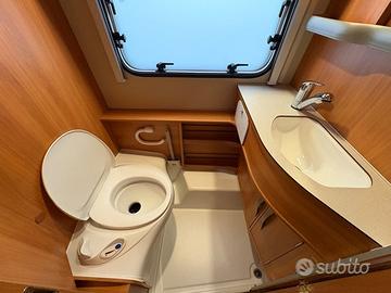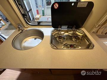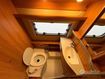 Frigorifero trivalente, stufa Truma con canalizzazione e ventilazione forzata, cucina 2 fuochi, bagno con wc Thetford, stabilizzazione anti sbandamento, Mover Al-ko, tendalino parasole.