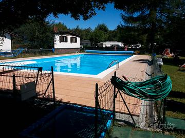 Caravan 6 posti letto attrezzata con frigo-freezer, lavandino, fornello e forno nell'annesso gabbiotto in legno adibito cucina/pranzo dove si possono ricavare altri 2 posti letto e gabiottino in legno per attrezzi e ripostiglio. Impianto tv e gas con stufa in ambedue locali. Acqua sia nel bagnetto che nel lavello in cucina. Fornito anche di doccino. Copertura della roulotte con telone in plasticone resistente e struttura rimovibile in acciaio. In campeggio residenziale aperto tutto l'anno. Servizi igienici adiacenti. Il campeggio a 900 mt sopra Stresa salendo al monte Mottarone, dispone di piscina estiva, campetto da tennis-pallavolo-pallone-bocce-bar. La roulotte è targata e si può staccare dal gabbiotto e viaggiare per vacanze in altri luoghi per poi riportare nel campeggio stanziale e proseguire vacanze in montagna. Euro 3.500,00 Vendita con passaggio di proprietà. La piazzola ha un costo annuale comprensivo per due persone. La zone è ottima per castagne e funghi passeggiate e sci. Lago Maggiore Stresa in 20 min. Cima Mottarone in 20 min. Milano in 1 ora. Camping 7 Camini. Scrivere mauro3890@yahoo.it o chiamare 3284455418 Mauro