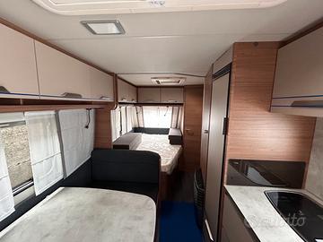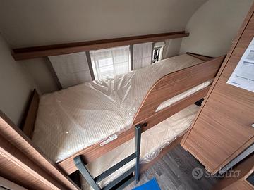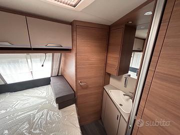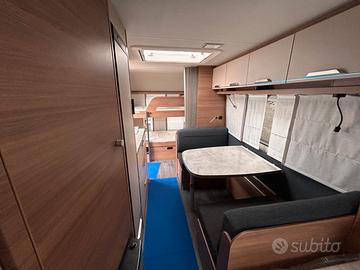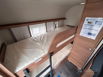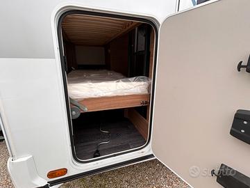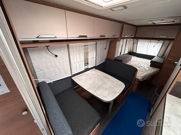 CARAVAN CON LETTI A CASTELLO IN CODA, DINETTE CENTRALE FACE TO FACE E LETTO ALLA FRANCESE ANTERIORE