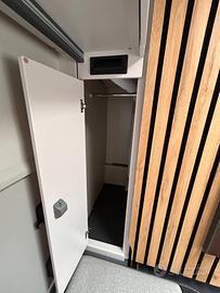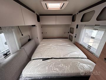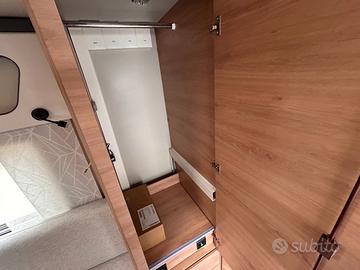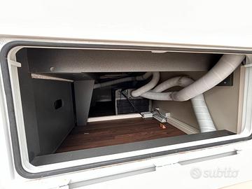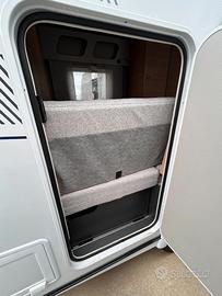 PACCHETTO TRASPORTO : Sportello di servizio 70 x 30,5 cm, posteriore dx - Sportello di servizio 70 x 30,5 cm, posteriore sx - Portellone garage 62,5 x 110 cm, dx - Occhielli di ancoraggio e binari di ancoraggio nella zona giorno - Dinette variabile per il trasporto di biciclette