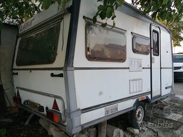 Vendo per inutilizzo caravan Laika Polo 39, anni 1988, in buone condizioni. Bollo pagato. Scheda Tecnica e Dimensioni Lunghezza complessiva (con timone): circa 5,5 m Larghezza: 2,22 m (perfetta per passaggi stretti e manovre in campeggio) Peso: tra 780 kg (grazie al peso contenuto trainabile con estrema facilità da quasi ogni auto). Allestimento Interno e Posti Letto Posti Letto: 3/4 (Dinette anteriore trasformabile in matrimoniale + Dinette posteriore trasformabile in singolo/castello). Cucina: Piano cottura a 2 fuochi, lavello in acciaio inox e frigorifero trivalente (12V/220V/Gas). Riscaldamento: Stufa Trumatic di serie. Disponibile stufetta termoventilata in caso di allaccio alla rete. Bagno: Vano toilette con lavandino, specchiera e WC chimico. Accessori Extra: Inclusa veranda, serbatoio acqua, gomme con tela rinforzata, predisposizione per allaccio con batteria 12V.