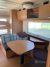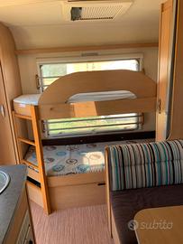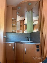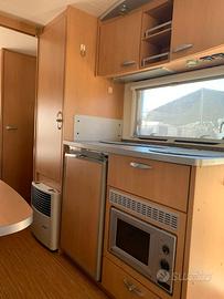 Splendida e comodissima roulotte KNAUS Sudwind 500 FSK del 2010, Unico proprietario, utilizzata soltanto per un mese all’anno in estate (anche se adatta anche all’uso invernale grazie le sue caratteristiche di coibentazione) dotata di ogni comfort, 6 posti letto ottenuti con un letto matrimoniale sempre pronto, una dinette a ferro di cavallo che si trasforma in un altro letto matrimoniale, due letti a castello, i materassi originali sostituiti con materassi di alta qualità anallergici ed ergonomici, doccia con wc separati, condizionatore molto efficiente marca Truma Frost air con bocchette aria ben distribuiti nei vari locali e con split interno (quindi no extra volumi rispetto alla sagoma esterna della caravan), forno a microonde, boiler marca Truma, stufa a gas Truma con termoventilazione, maxi oblò panoramico, altri n° 2 oblo’, porta bici sul timone, stabilizzatore Alko, valvola di commutazione per alimentare n° 2 bombole del gas in sequenza (bombole escluse dalla vendita), grande gavone sotto il letto matrimoniale accessibile con grande portello esterno, tanti pensili e armadi interni, frigo trivalente a 12 V, a 230 V e a gas, Parabola per tv digitale con Tv compresa, larghezza della caravan 248 cm, lunghezza con timone 731 cm, peso F2 = 1290 kg da Libretto di Circolazione, parete frontale esterna molto aerodinamica. Compreso nell’offerta il tendalino esterno, la tenda cucina e accessori vari da valutare insieme. Altre foto su richiesta