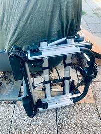 Portabici e-bike per furgone van munito di gancio traino. Basculante per accedere al pottelloni posteriori. marca las eufab 2 bici possibilita fino a 3/4 bici in base al peso sulla trsta sfera gancio. Cone nuovo . Rochiudibile nell’ingombro completo di fari cavi e meccanismi vari.