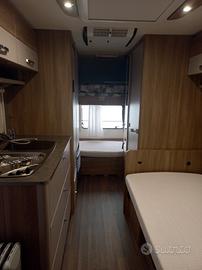 Vendesi Caravan Premio Burstner 495TK: cinque posti letto, bagno con doccia, piano cottura, climatizzatore inverter, stufa Truma, boiler. Pre-ingresso e cucina in legno massello di pino nordico accessoriata.