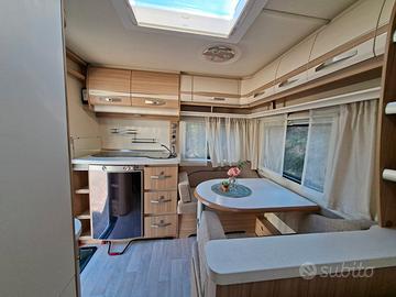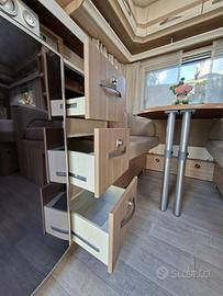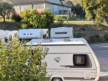 * Tipologia: CARAVAN ROULOTTE RIMORCHIO | ** Posti Letto 3 | Cassetta WC Thetford Estraibile | Dinette Centrale | Frigorifero Trivalente Basso con Scomparto Ghiaccio | Gavone Laterale | Letto Posteriore alla Francese | Luce Esterna | Oblò PANORAMICO | Piano Cottura Cucina 2 Fuochi | Truma COMBI (Riscaldamento e Acqua)
