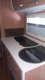 Sempre al coperto wc e doccia e cucina interna mai usato. Frigo con congelatore, forno a microonde, aria condizionata, riscaldamento per inverno, Cucinotto esterno, tendalino mai usato. Superiore al nuovo.
