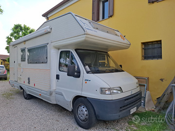 Vendo camper mansardato Caravans International Riviera GT del 1998. Meccanica Ducato 2.5 TDI con impianto ad Idrogeno, 125000 km, omologato 7 posti viaggio e 7 posti letto. Doppia dinette, bagno rifatto a nuovo, doppia cassetta Thetford, doppi pannelli solari per un totale di 940 watt con regolatore di carica MPPT da 100A, doppio inverter per un totale di 3500 watt continui, doppia batteria servizi AGM per totali 280Ah frigorifero trivalente perfetto funzionante. Stufa Truma, boiler Truma, riscaldatore ausiliario della cella che pesca dal radiatore del mezzo. Doppio serbatoio acque chiare di cui uno interno alla cellula per evitare congelamento in inverno. Serbatoio acque grigie e tubi di scarico coibentati e riscaldati. Tendalino Fiamma revisionato e portabili da 4 posti.