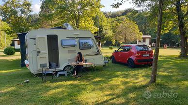 Caravelair 376 super accessoriata appena revisionata, gomme nuove. Nel prezzo includo: un tendalino Veranda Doppia stuoia Tavolo legno pieghevole 4 sedie Cucina esterna in ghisa a due fuochi e comodo mobiletto porta cucina e portaoggetti Doppia bombola gas Pannelli solari e batteria, comodissimi per avere sempre e comunque energia Doppio specchietto auto Gamba tavolo dinette a pompa, molto più comodo per fare e disfare letto matrimoniale nella zona dinette Completa di tutto, ideale come primo caravan, 4 posti letto.